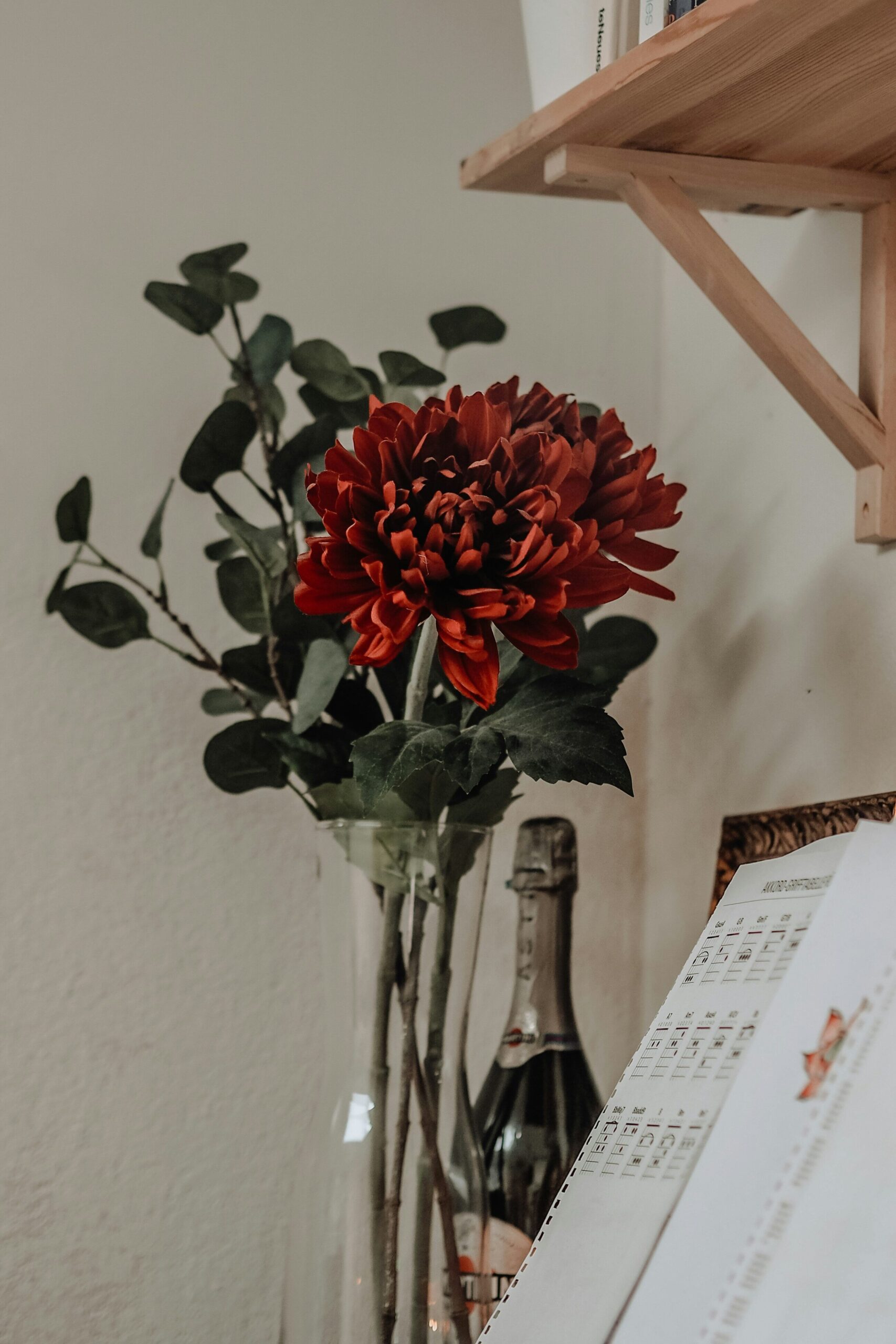 In Ergänzung zu deinen Blumen machen sich selbst gesammelte Blätter und Äste auch super als Dekoration.