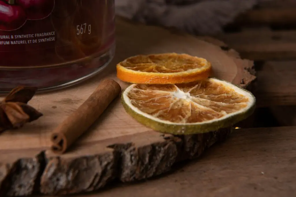Besonders als Tischdekoration, oder auf einer freistehenden Kommode kannst du ein paar (getrocknete) Äpfel oder Orangen und Zimtstangen platzieren.
