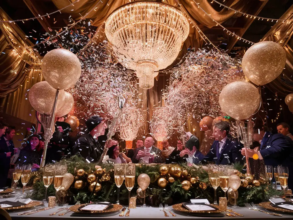 - Verteile Knallbonbons* oder Konfetti-Kanonen*, die genau um Mitternacht gezündet werden. Das sorgt für den ultimativen Partyspaß!
