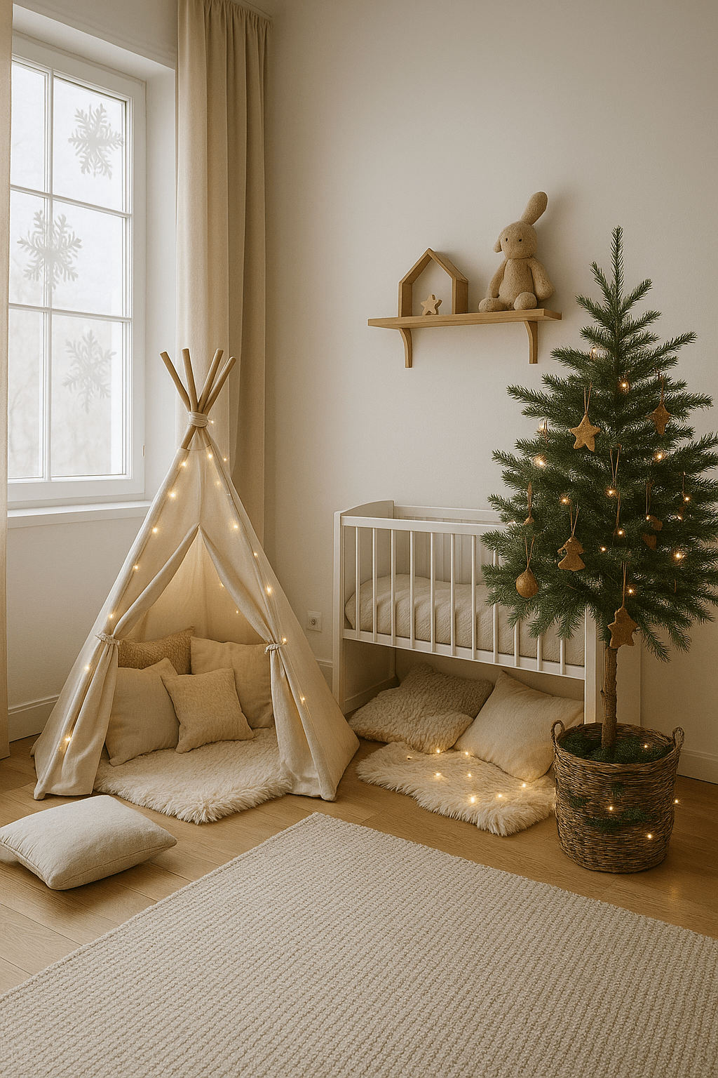 Auch die Kleinen möchten ihr Reich festlich geschmückt haben! Ein skandinavisch inspiriertes Kinderzimmer zu Weihnachten verbindet Magie und Minimalismus und ja, das geht. 😉