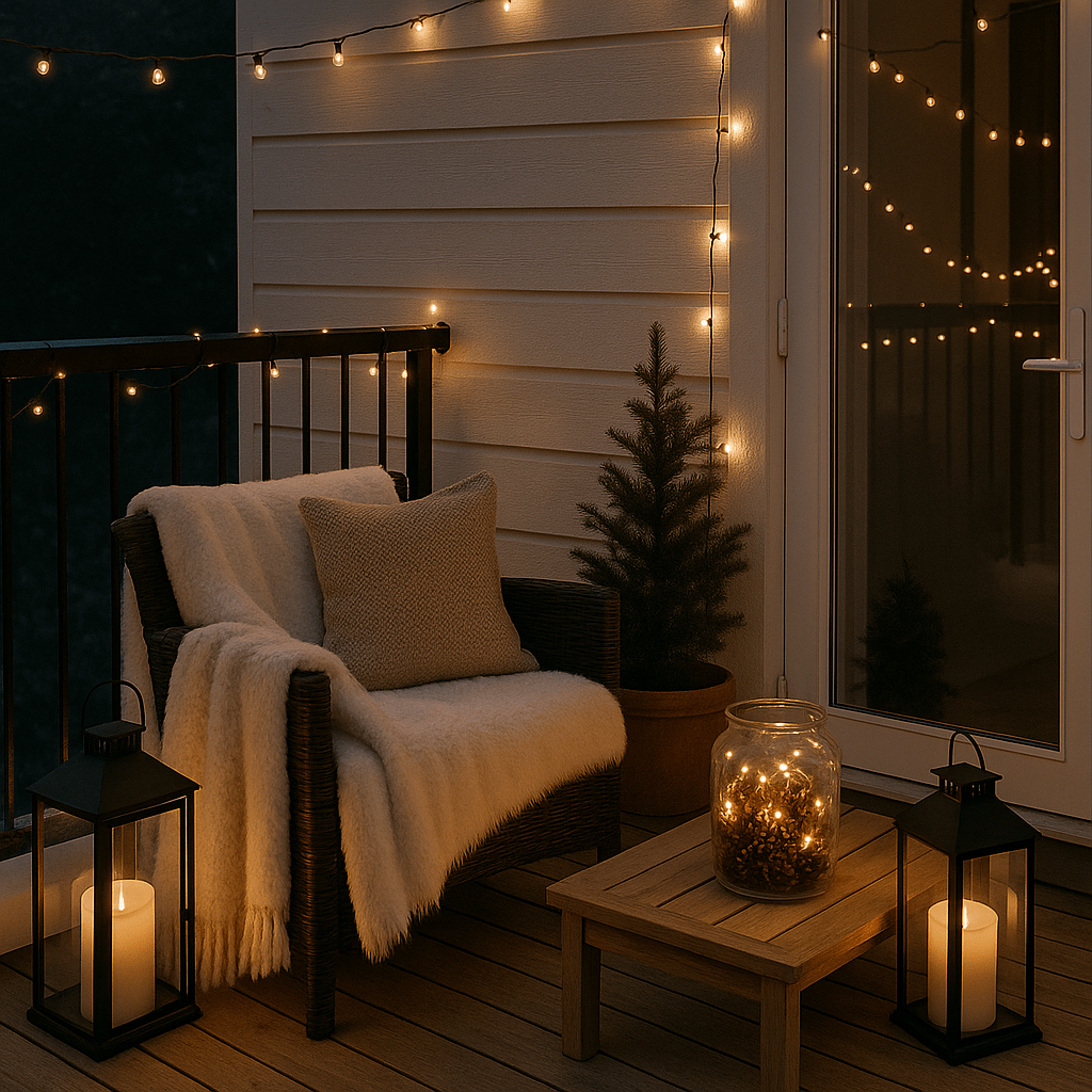 Beginnen wir mit dem Offensichtlichen, der Außenbeleuchtung. Häng eine wetterfeste Lichterkette entlang des Balkongeländers oder um den Rahmen der Terrassentür. Warmweißes Licht versteht sich, nichts Buntes. Du wirst überrascht sein, wie sehr dich das kleine Funkeln schon von drinnen erfreut.