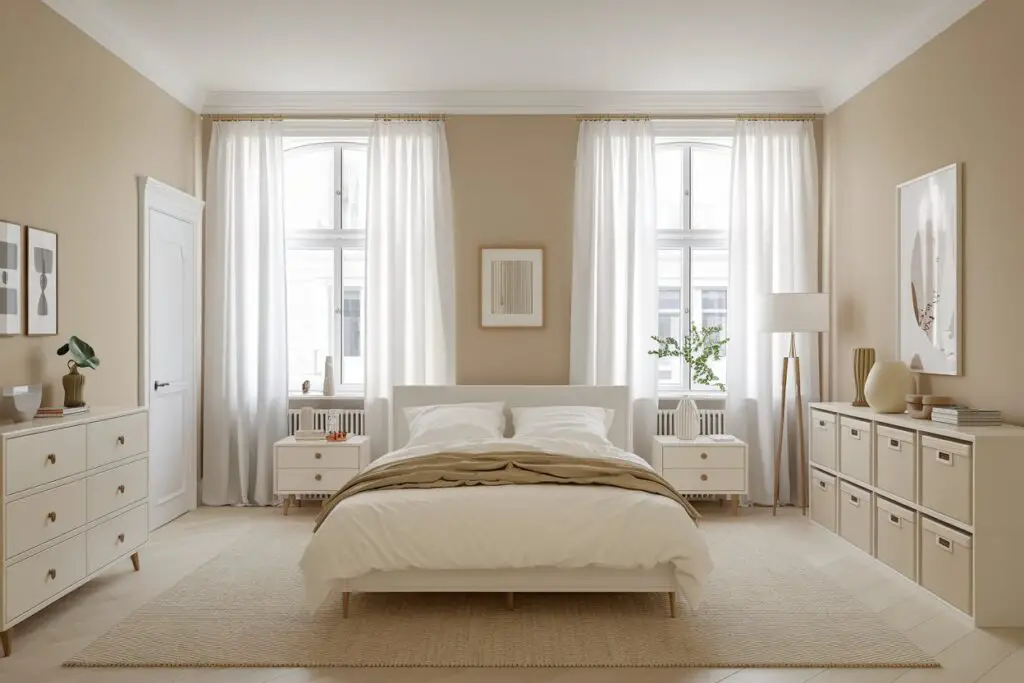 Die Basis für ein Stockholm Zimmer sind helle Farben. Lass deine Wände also entweder weiß, oder streiche sie in einem Creme oder Beige Ton.