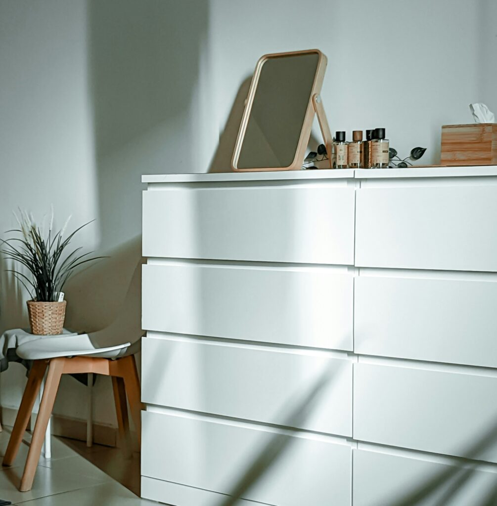 Das kann alles Mögliche sein: ein alter Holztisch, ein schöner Sessel oder eine Kommode, die du selbst verschönerst. Das hebt dein Zimmer vom Standard ab.