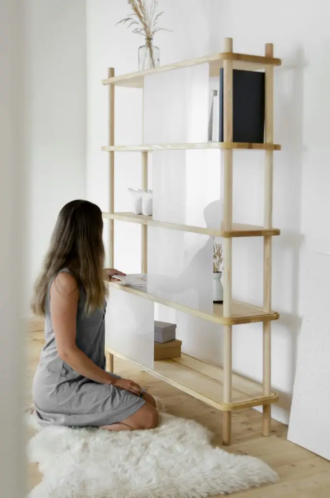 Integriere offene Regale um dein Zimmer luftiger wirken zu lassen. Hier kannst du schöne Bücher, Kerzen und andere Dekorationen aufstellen.