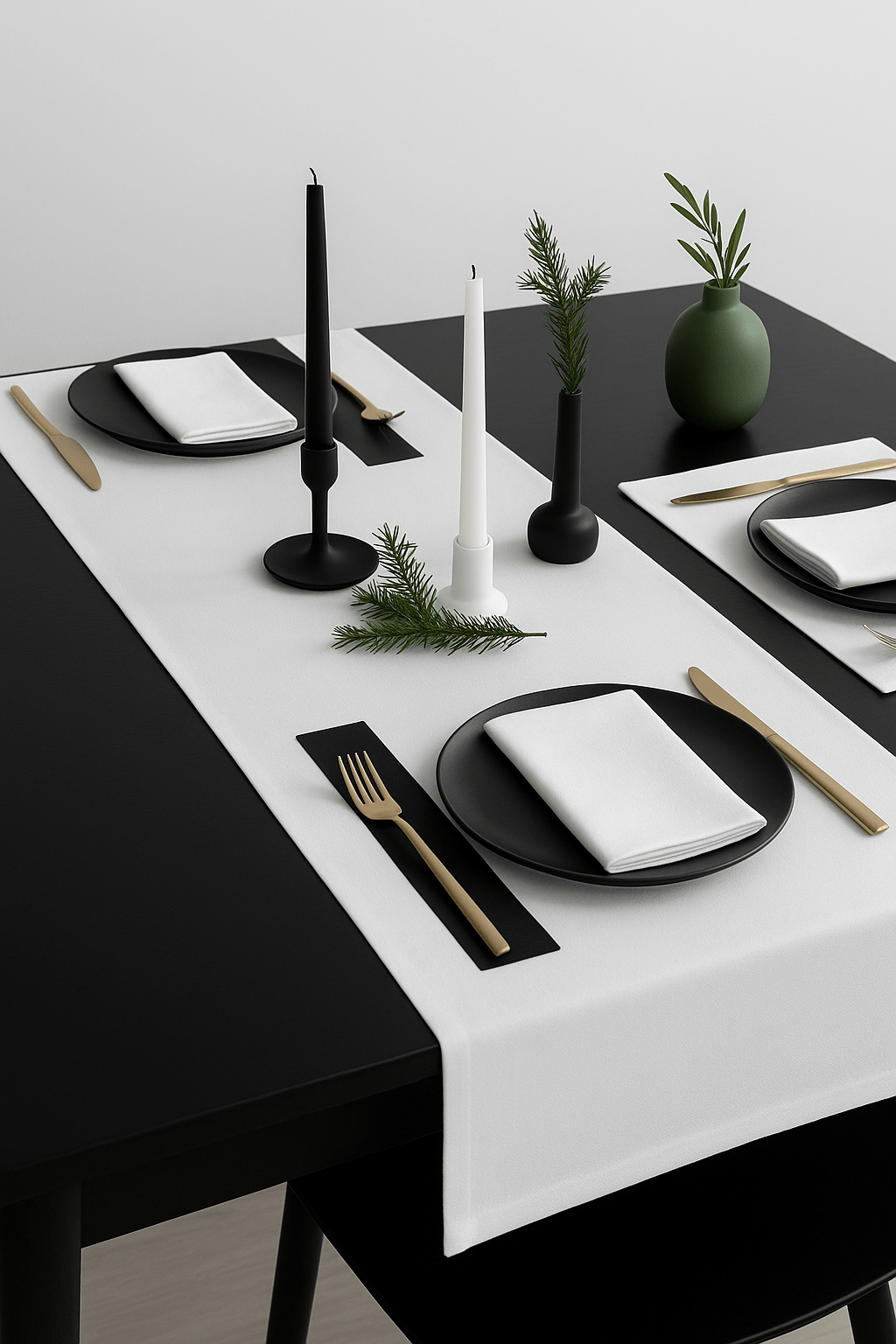 Weniger Farbe, mehr Kontrast: der Monochrom Look in Schwarz-Weiß ist ideal für Menschen mit Stil. Diese minimalistische Tischdekoration wirkt modern, aufgeräumt und dennoch festlich elegant.