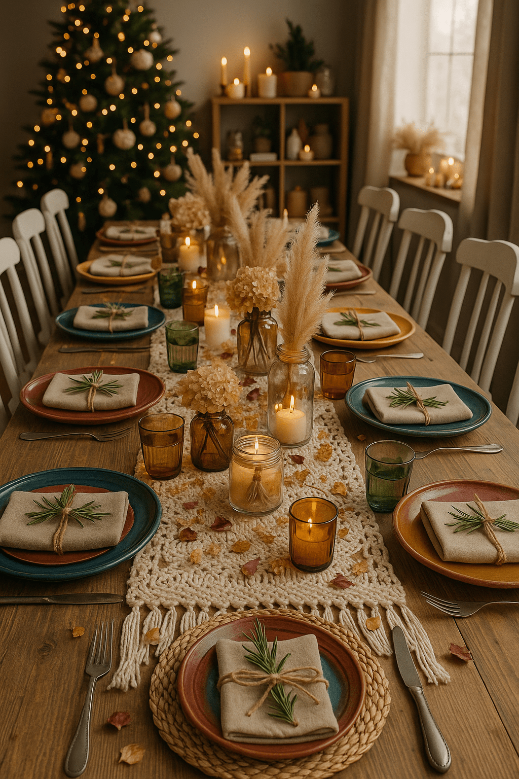 Bunt, unkonventionell und kreativ. Boho Weihnachten halten Einzug auf unseren Tischen. Statt strenger Farbkonzepte ist alles erlaubt, was dir gefällt und einen künstlerischen Touch hat.