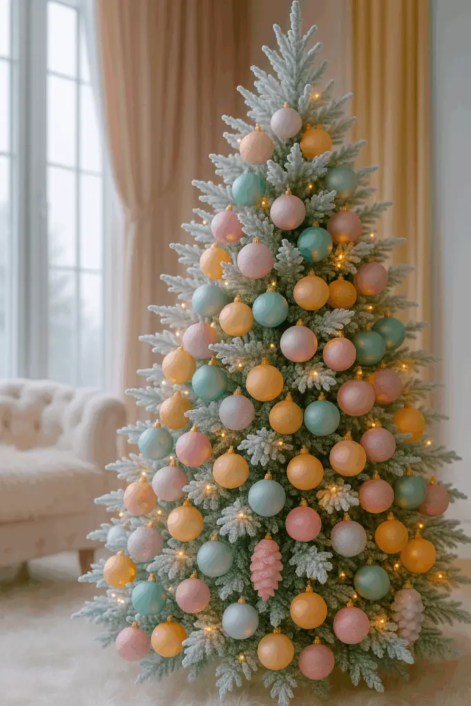 Pastell Christmas ist wie Weihnachten in der Zuckerwatte Wolke. Ob Babyblau, Mintgrün, Flieder oder Sorbetgelb, sie alle prägen 2025 viele kreative Baum Dekorationen.