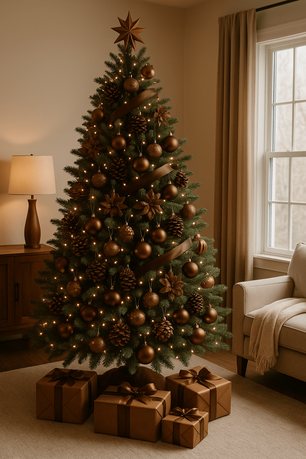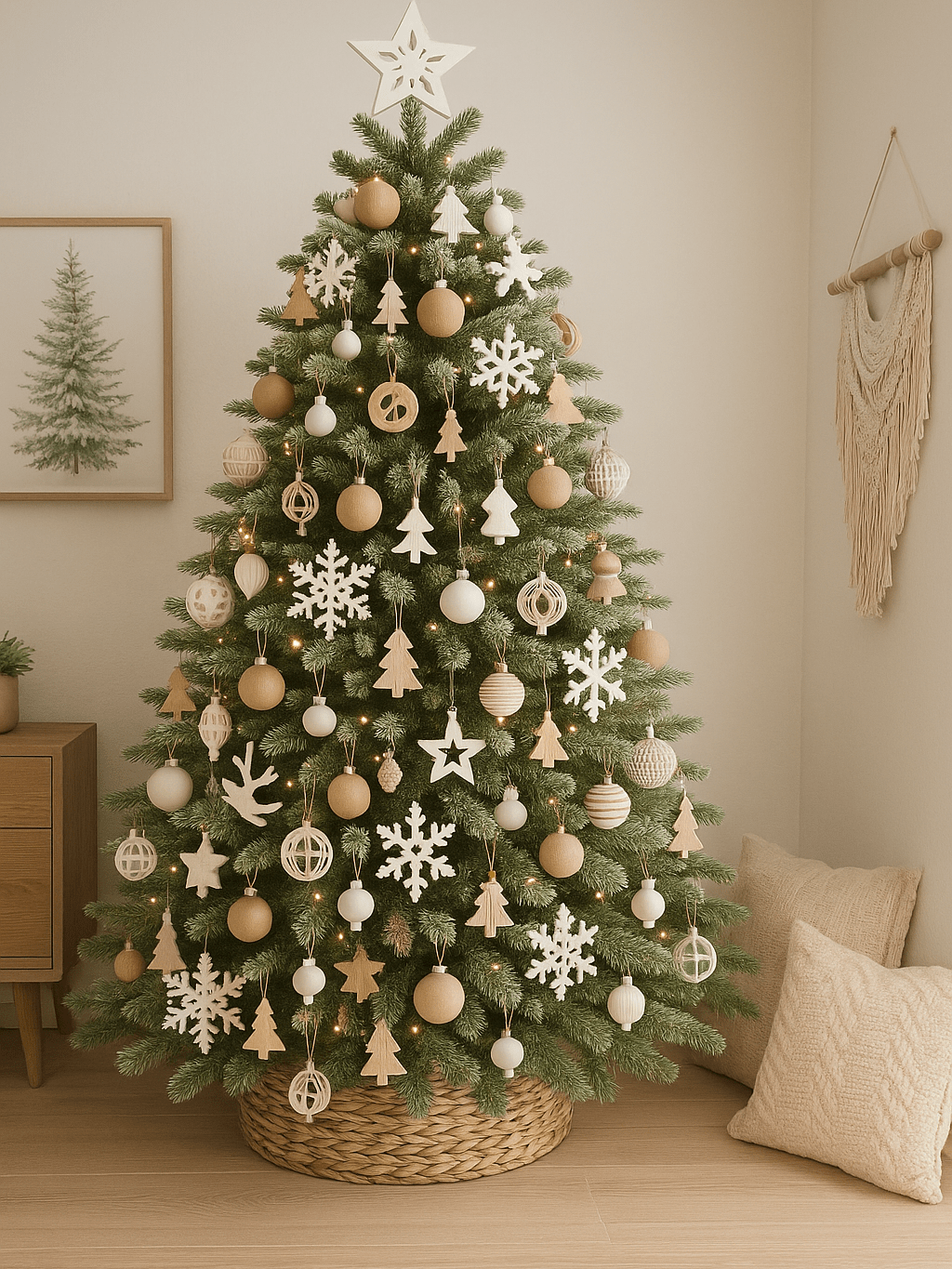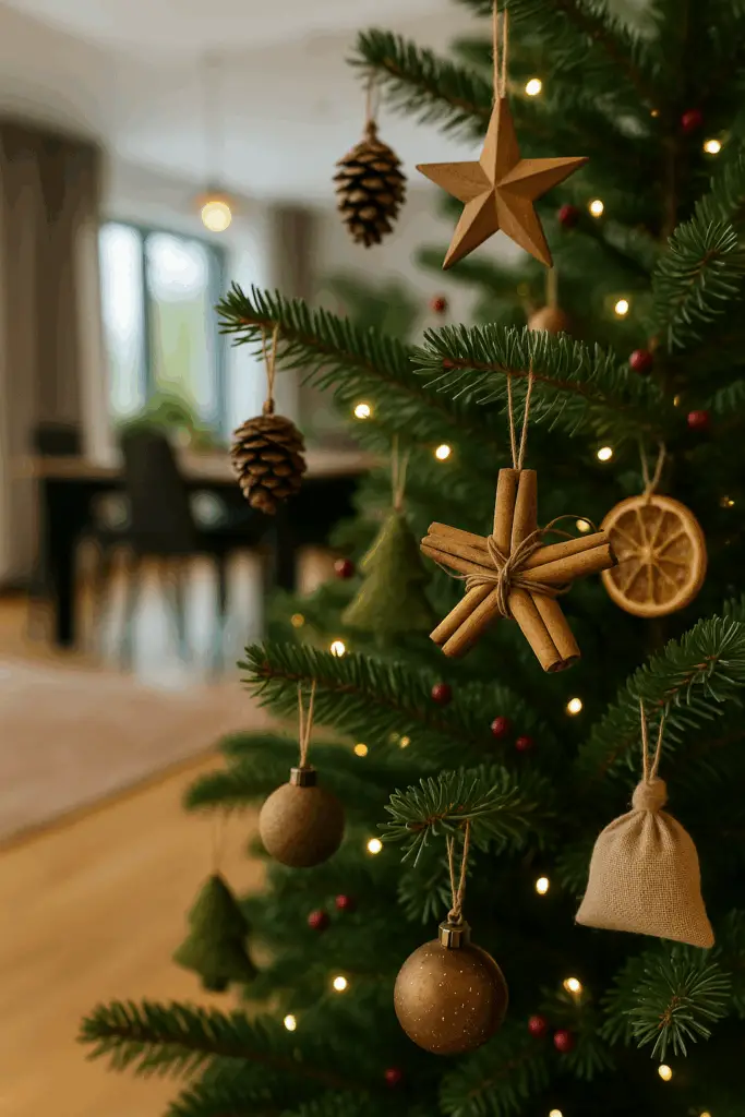Einer der wichtigsten Trends 2025: Weihnachtsdeko in natürlichen Farben. Warme Erdtöne, viel Grün und echte Materialien sorgen dafür, dass dein Weihnachtsbaum fast mit dem echten Tannenwald konkurriert.
